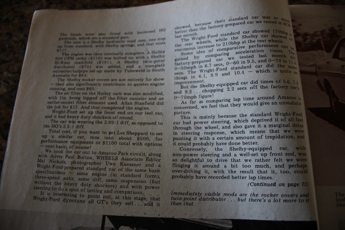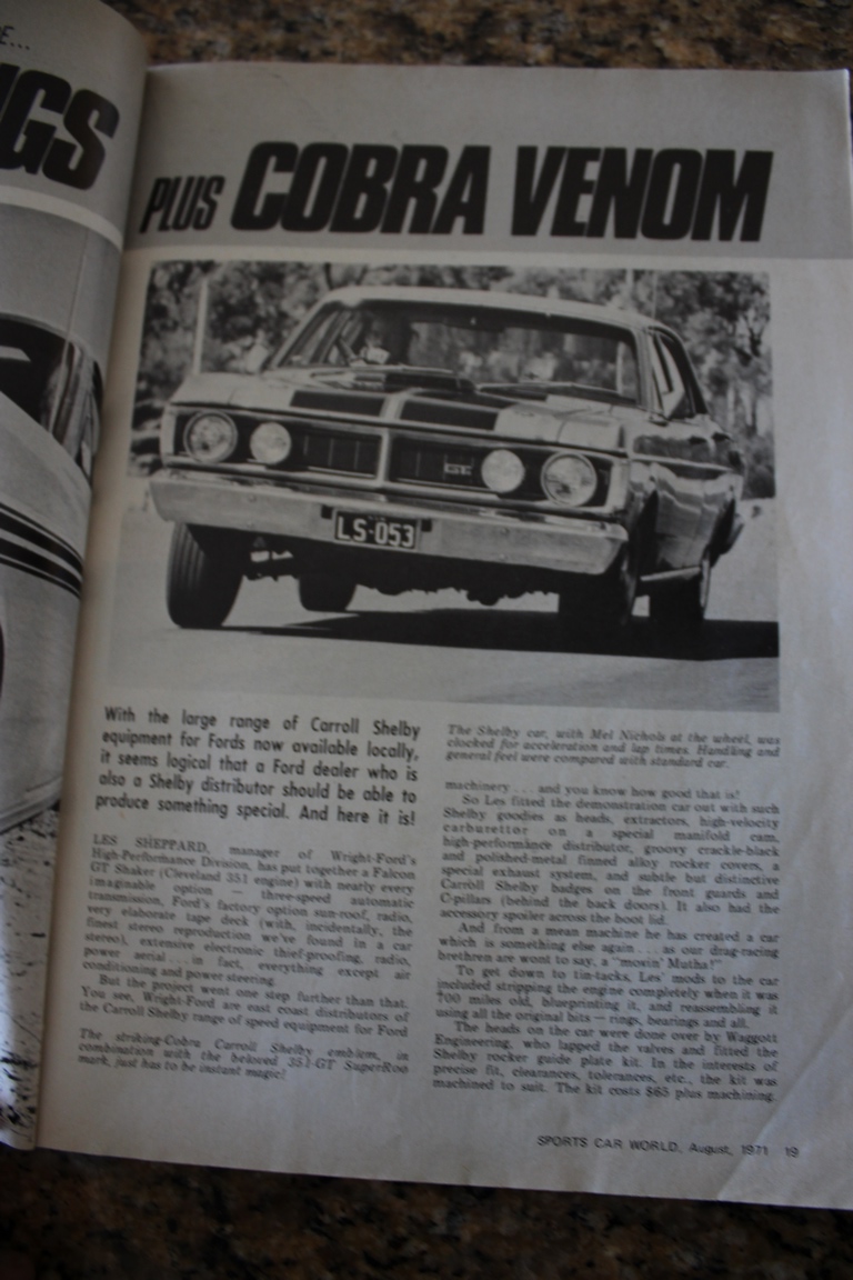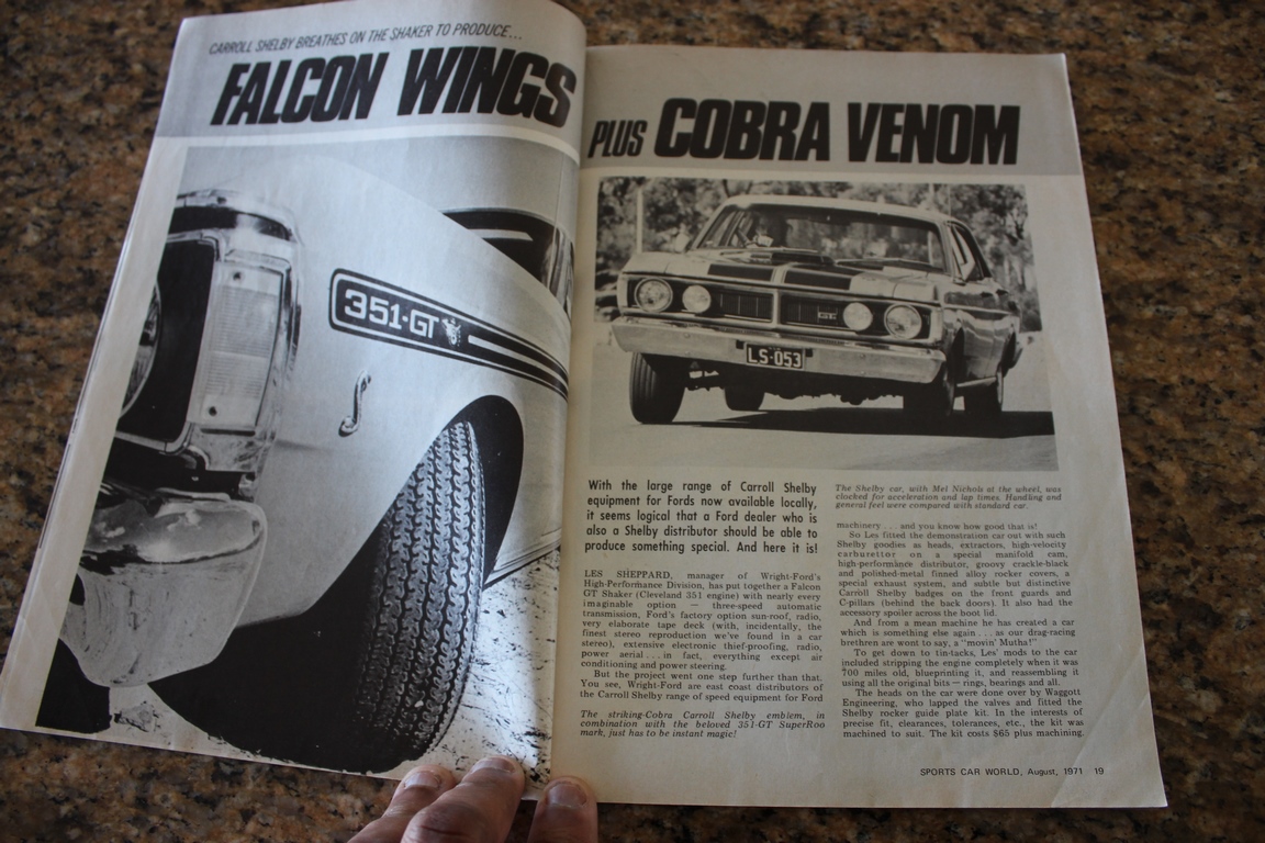 Certain Ford Dealers sold Shelby equipped XY GT’s (x5) and other XY’s including this Fairmont GS, they came with many mods but it was genuine, they even had a Green engine not Blue & genuine Shelby hi-rise which needed the air filter to be modified..