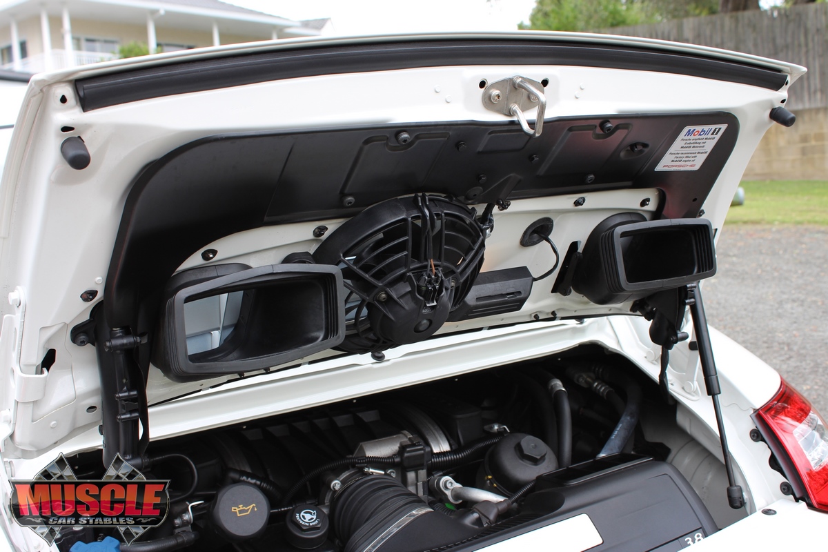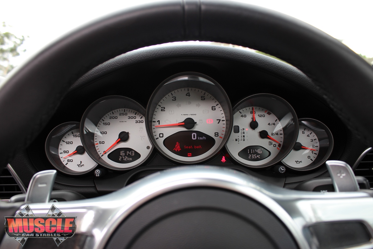 Gone are the type 996 ‘fried egg’ headlights, to stay are the classic sloping 911 lines and sportingly small over-all dimensions. New in is 300 horses of power, a wider front and rear wheel track delivering ludicrous grip levels, a now hard to find rack-and-pinion steering system and tech like Porsche Stability Management (PSM) and Satellite Navigation.